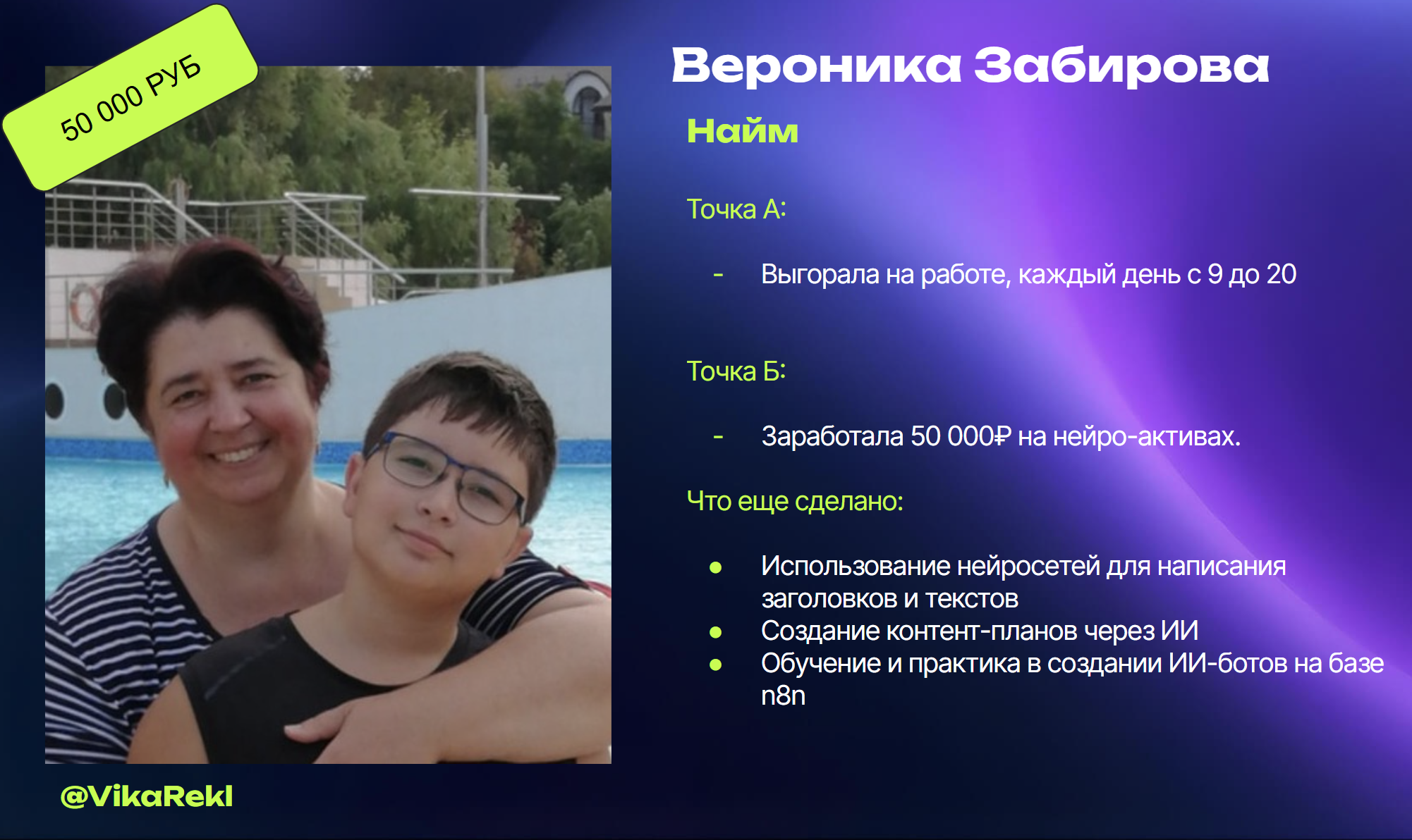 — Разбор-кейса: как женщина из офиса без опыта заработала первые 12.000₽ на нейросетях всего за несколько дней.